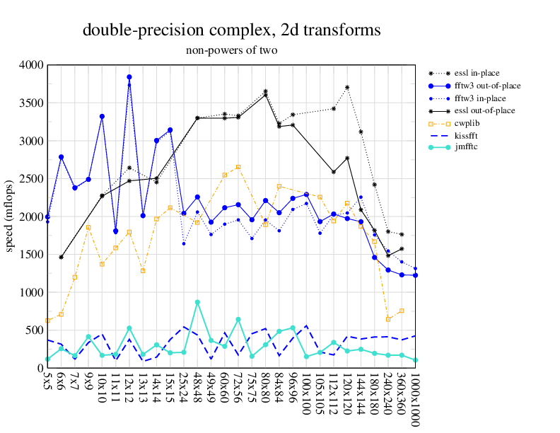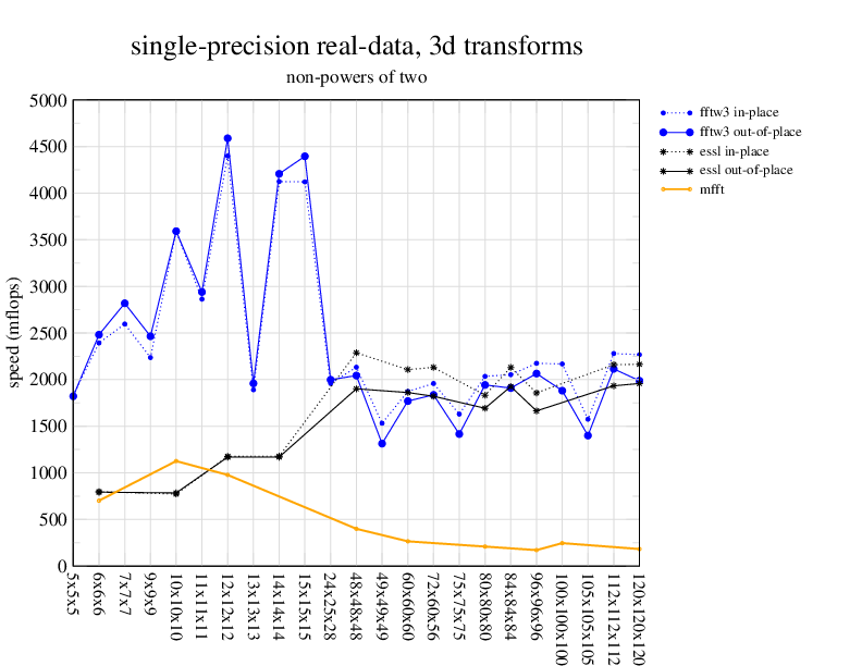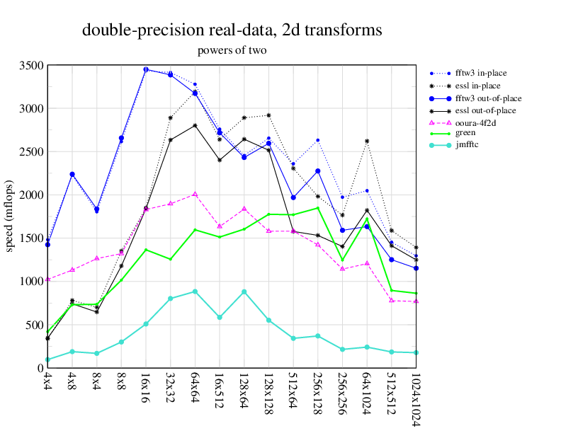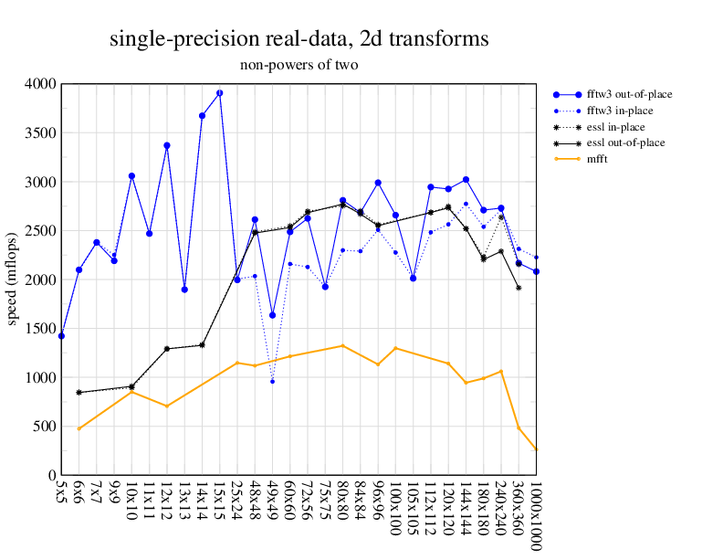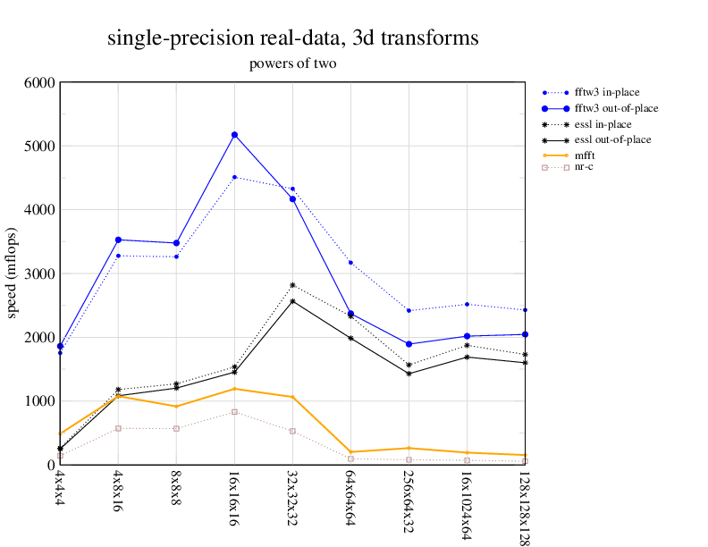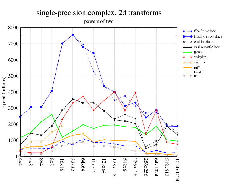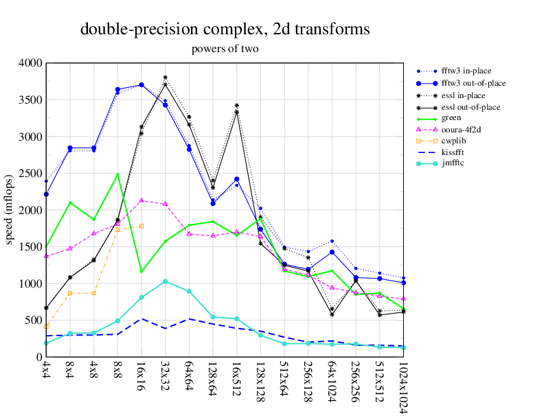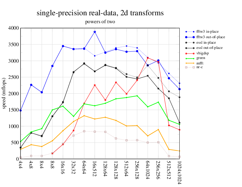Apple PowerMac G5, 2 GHz. Two 2 GHz PowerPC 970 processors, linux 2.6.7, gcc-4.0.2, g++-4.0.2, gfortran-4.0.2, IBM ESSL library V4.2. Has Altivec/VMX (4-way single precision SIMD).