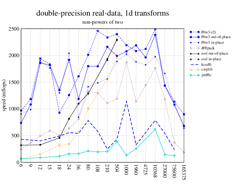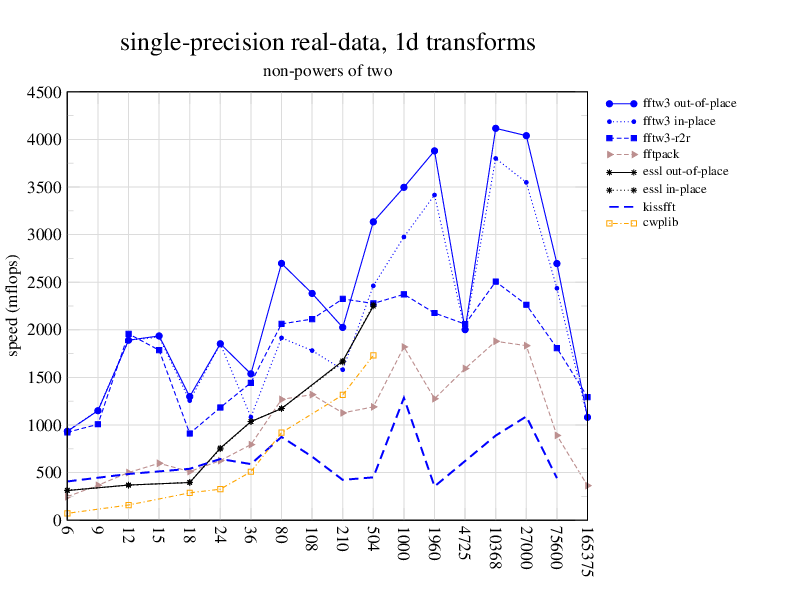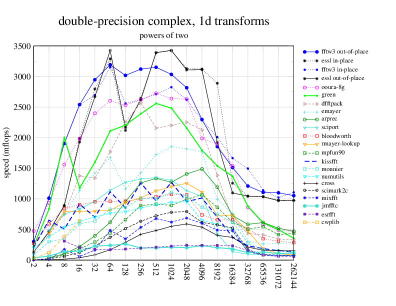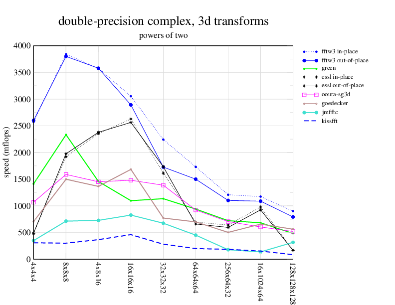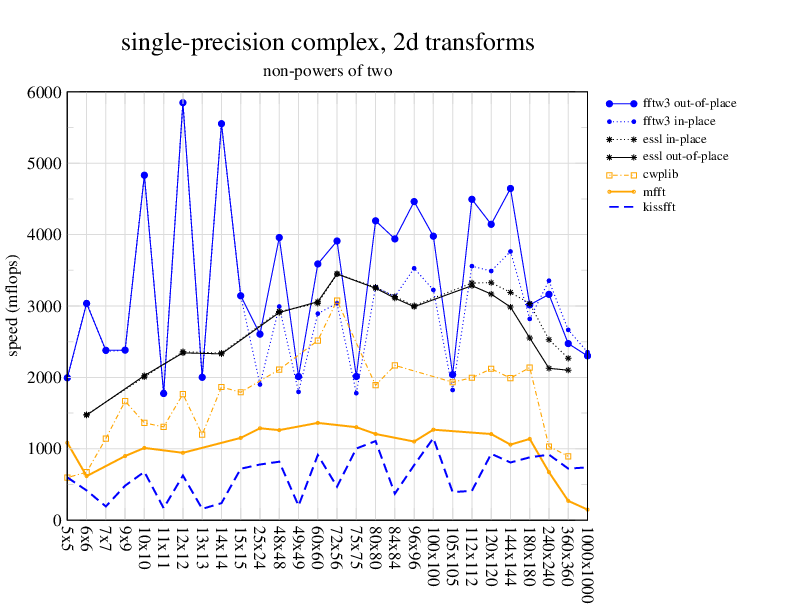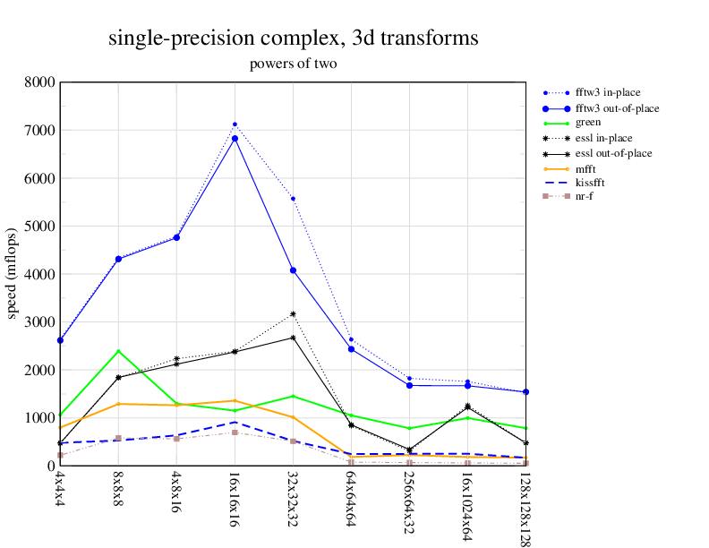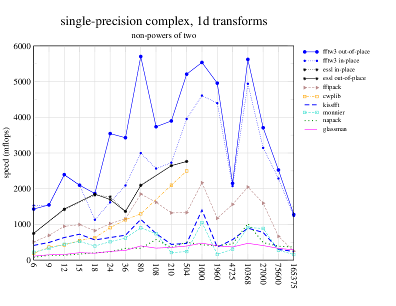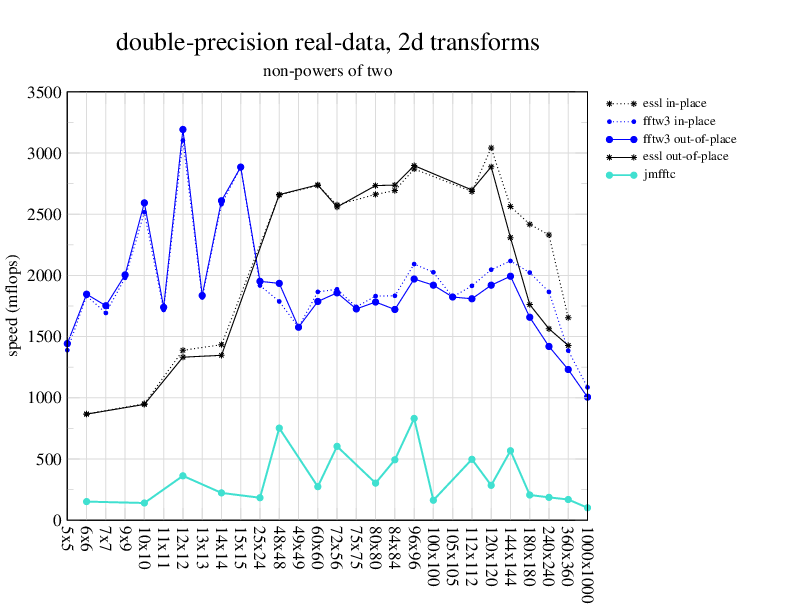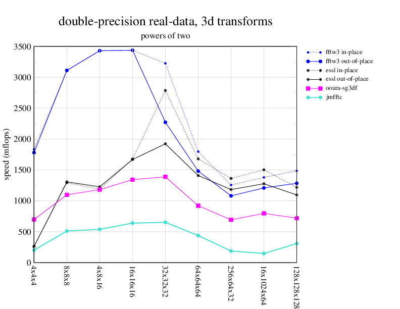 Apple PowerMac G5, 2 GHz. Two 2 GHz PowerPC 970 processors, linux 2.6.7, gcc-4.0.2, g++-4.0.2, gfortran-4.0.2, IBM ESSL library V4.2. Has Altivec/VMX (4-way single precision SIMD).