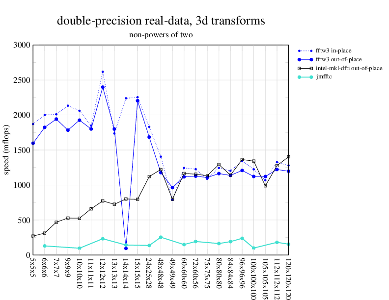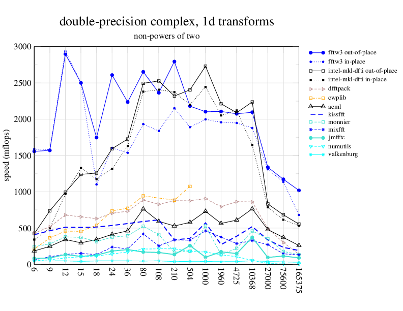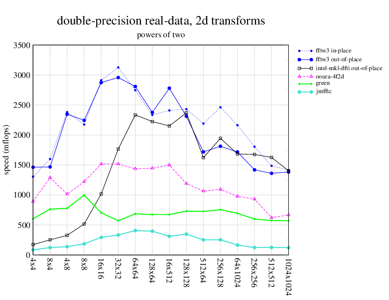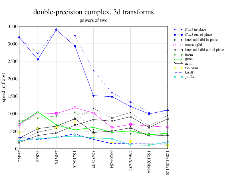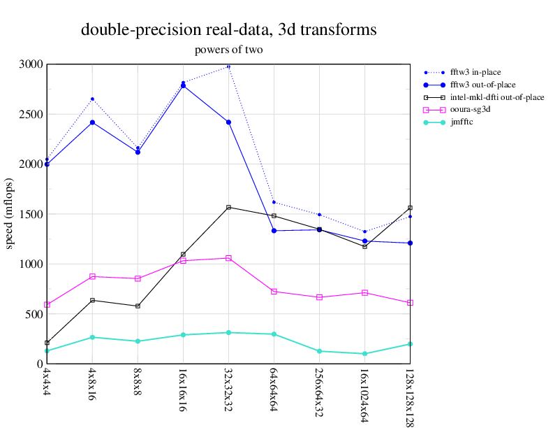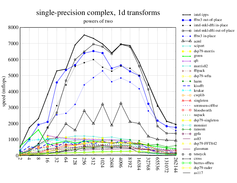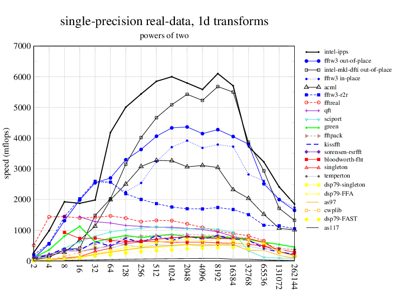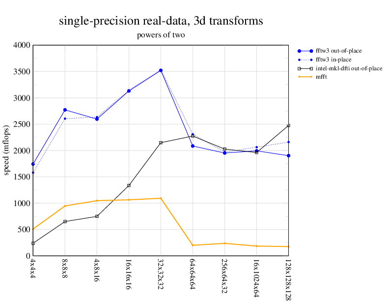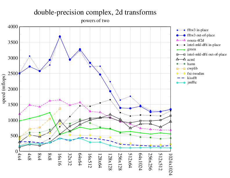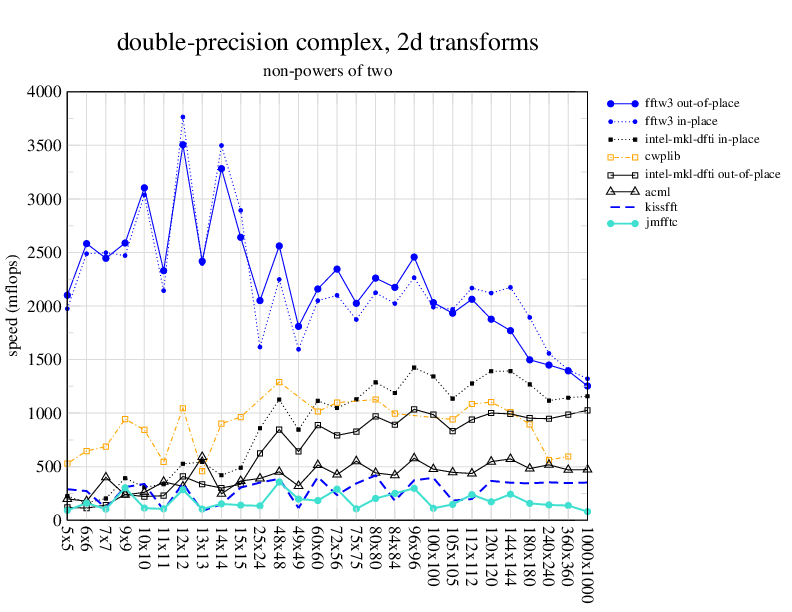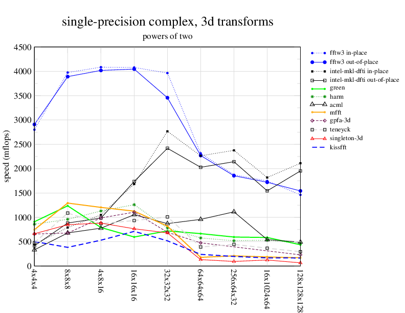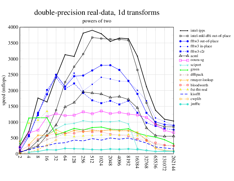 Four-processor 3.06 GHz Intel Pentium 4, 512 KB L2. Linux 2.4.25, gcc-3.3.3, g++-3.3.3, g77-3.3.3, AMD Core Math Library (ACML) 3.0.0, Intel Math Kernel Library Version 8.0.1, Intel Integrated Performance Primitives v5.0. Has SSE (4-way single precision SIMD), SSE2 (2-way double precision SIMD).