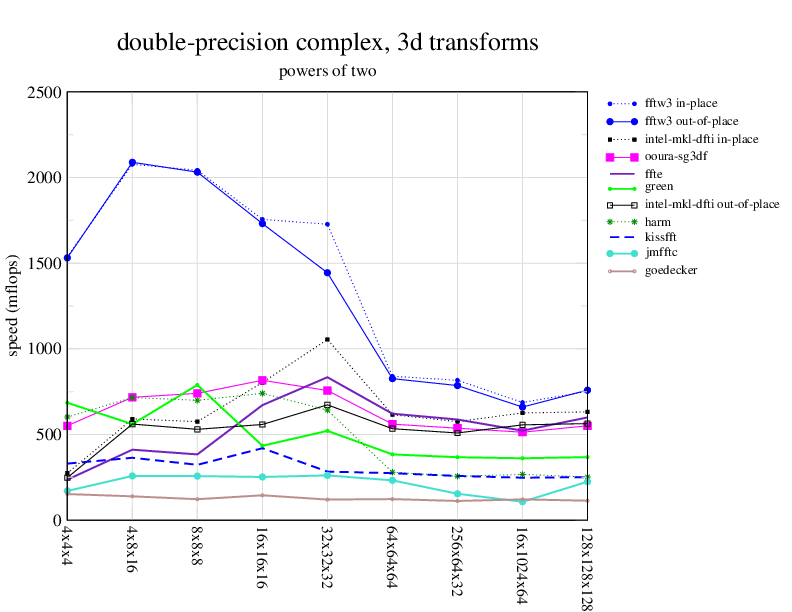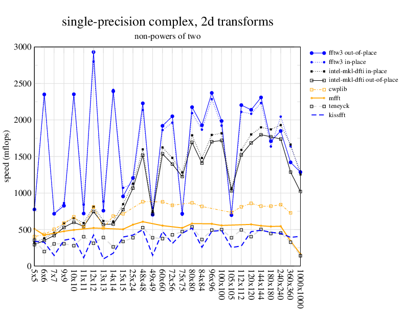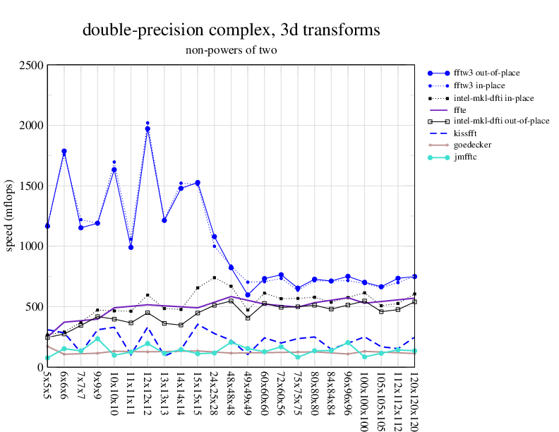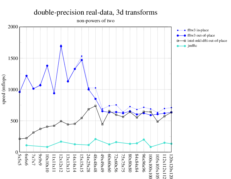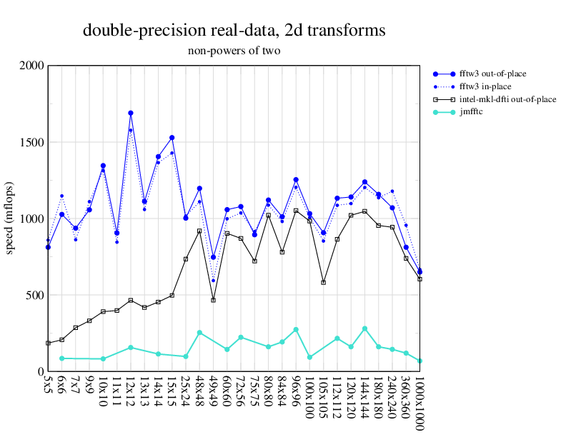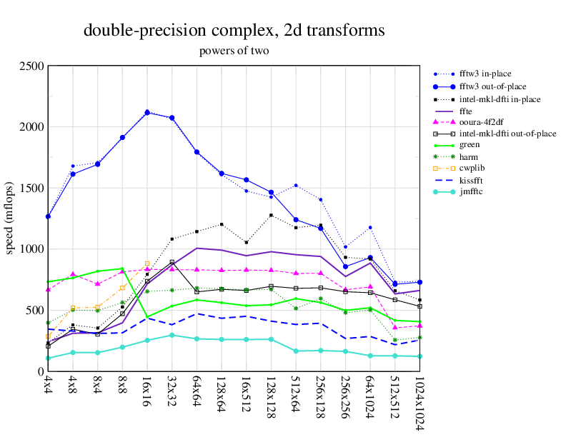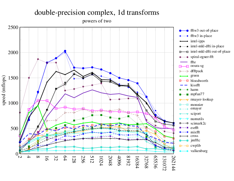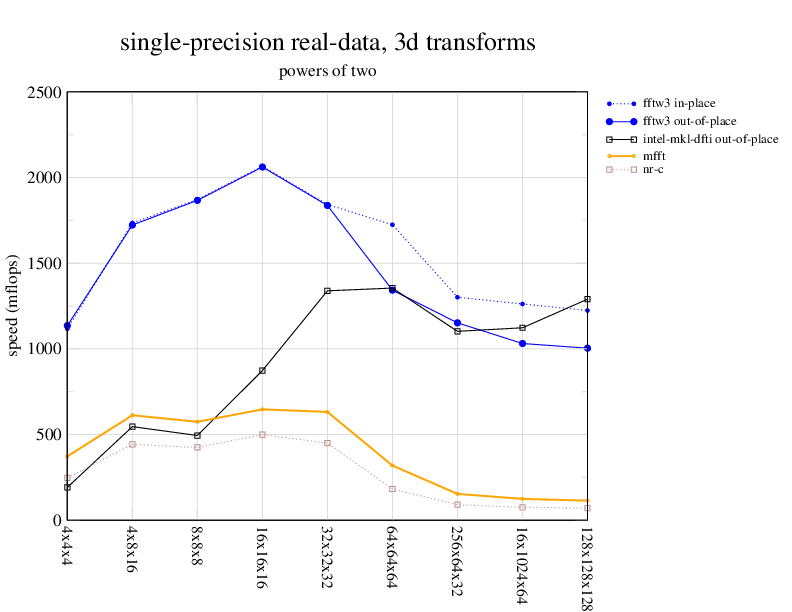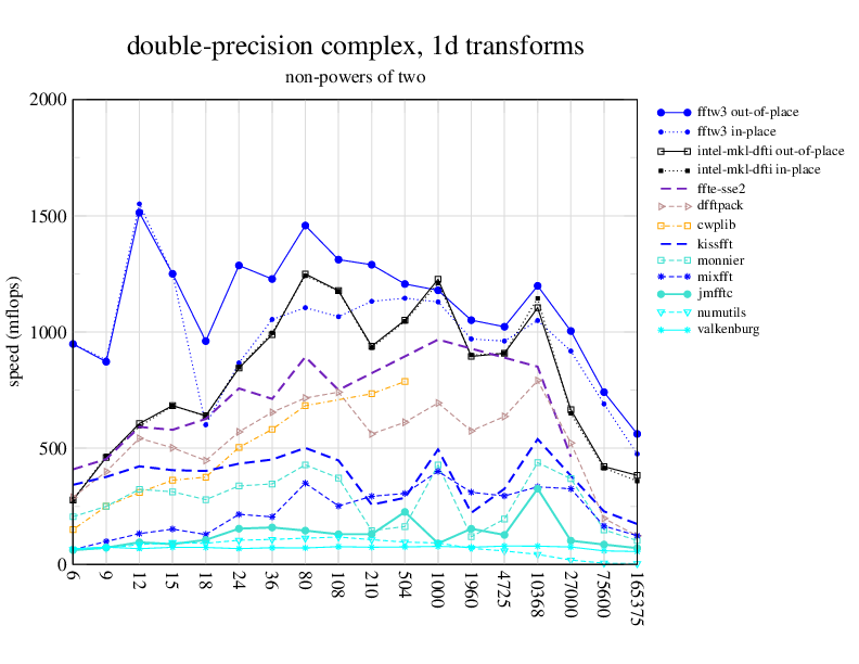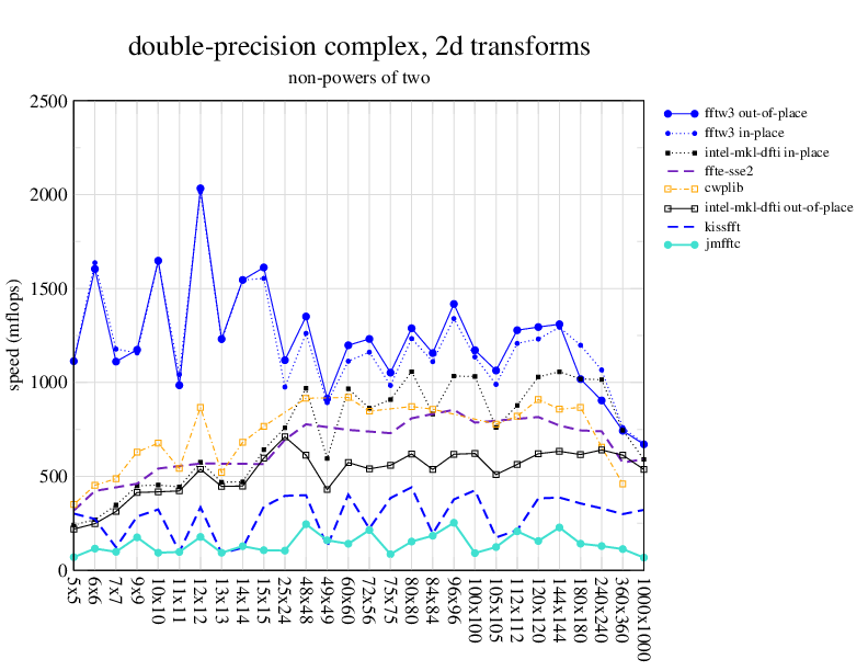 IBM/Lenovo Thinkpad T40. 1.6 GHz Intel Pentium M (Banias), 1MB L2. Linux 2.6.11, Intel C/C++ Compiler 9.0, Intel Fortran Compiler 9.0, Intel Math Kernel Library Version 8.0.1, Intel Integrated Performance Primitives v5.0. Has SSE (4-way single precision SIMD), SSE2 (2-way double precision SIMD).